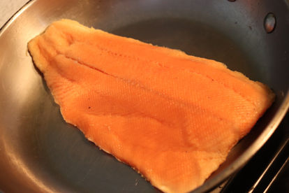 5. Sprinkle the white rice flour evenly over salmon, followed by the salt & pepper.