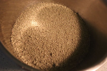 1. Throw your pumpkin and sunflower seeds into your food processor and process till a fine meal. Refer to pictures. Once processed down, throw the seed mix into your stainless steel bowl.