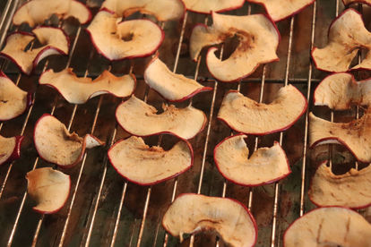 3. Check your slices and make sure they aren’t stuck to your rack and if they’re, just flip them over and let the dryer side finish out facing the racks. Set your timer for 1 hour and check their status to see if you want them more crispy or not. A good way to check if they are done is to set one of the chips out and let it cool. Check how it is and judge from there.